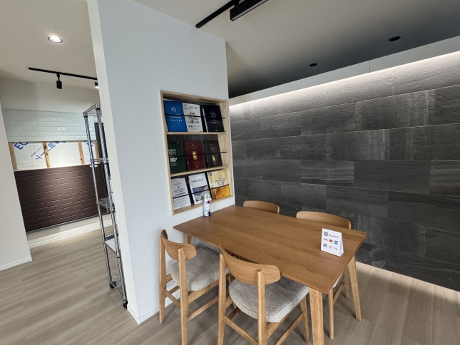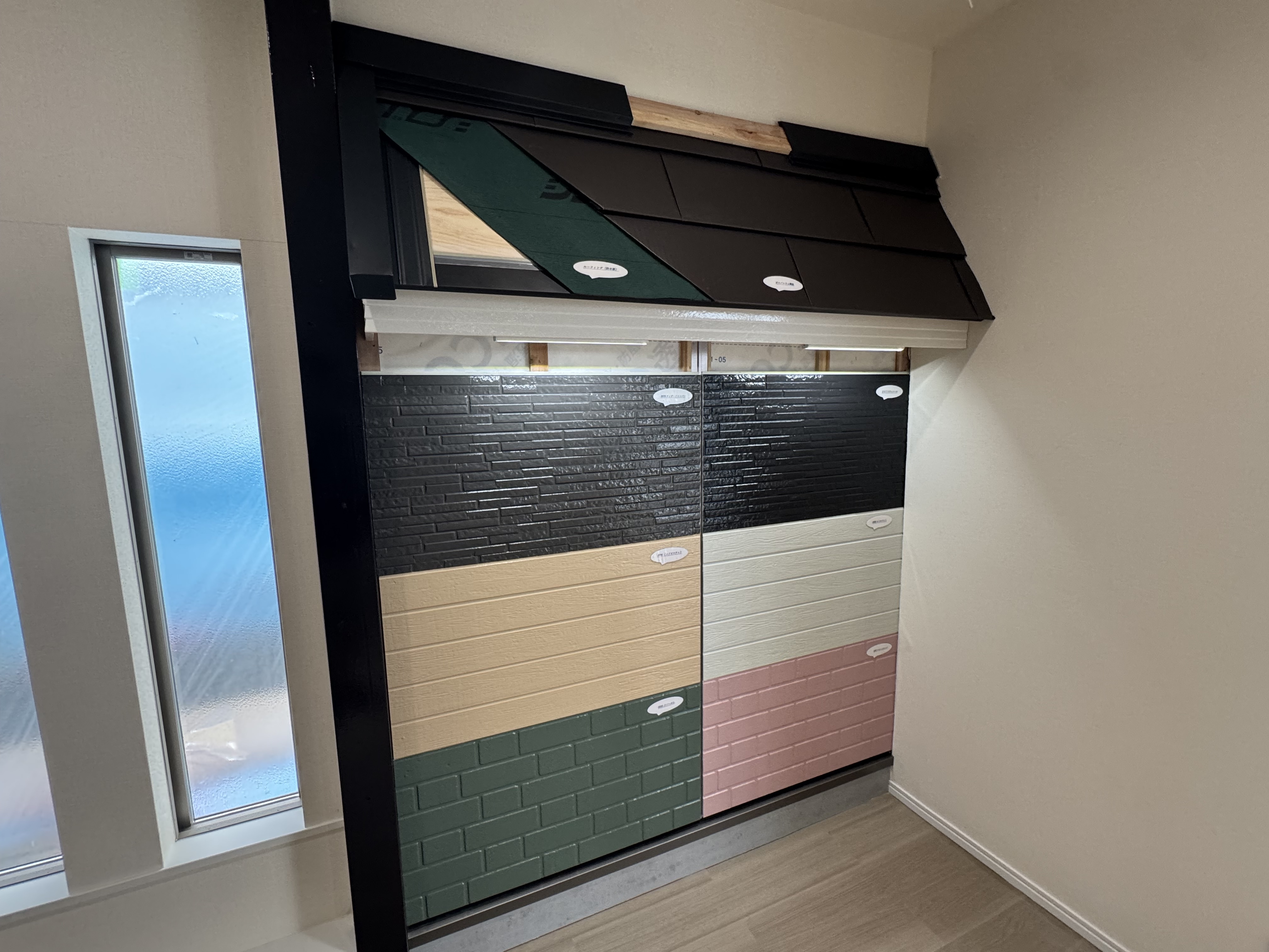 業者を選ぶ際にどこに頼んだら良いか?何を信用したら良いか?と悩まれている方も沢山居れば、決めた業者で塗り替えに満足出来ず失敗した。。などの意見を多く聞きます!相見積もりの際にコーキングは劣化した既存の物を取らずに増し打ちを提案する所も沢山あります!その理由はコーキングを撤去したら雨漏れを引き起こす。築年数・劣化具合で色々ありますが、僕らはプロで居なきゃダメなんです!!建物にあった施工をご提案しないといけない、コーキングの意味・重要さなどを今までは言葉で一生懸命説明していましたが、イマイチ伝えられているか分からなかったので、室内に構造模型を作りました! 構造を見てもらい、ちゃんとした施工をすれば雨漏れをしない・壁の中ってこうなってるんだ?などを目で見て体験してもらえる環境を作りたかったので、更新はサボってましたが良いお店が出来ました(^^) まだ外回りの工事はしていますが、中は仕上がっているのでオープンいたします⭐︎中々イメージ出来ない色味の参考などもあります!