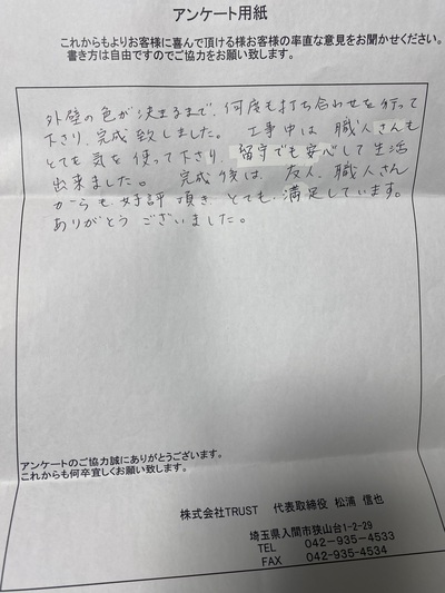N様この度はTRUSTを選んで頂き誠にありがとうございます。