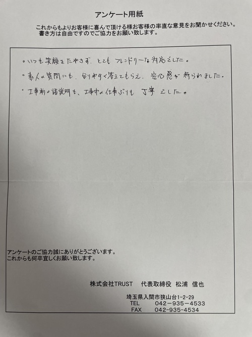 工事前の諸説明も、工事中の仕事ぶりも丁寧でした。