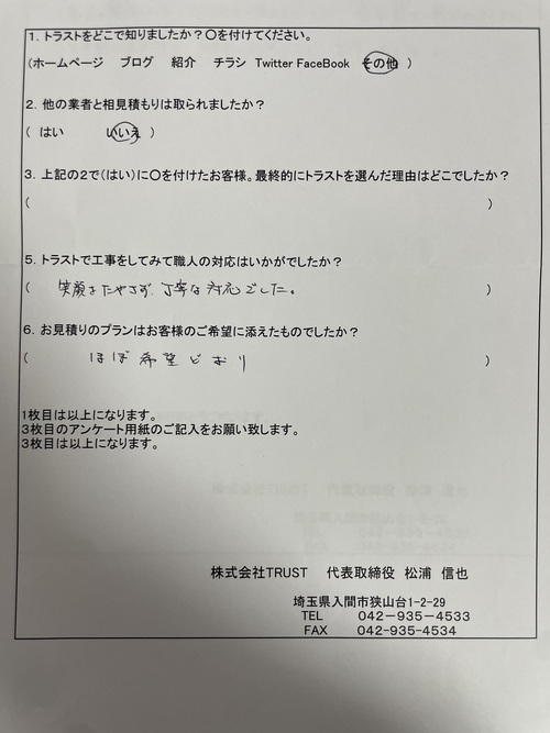 この度は数ある業者の中から弊社を選んで頂き有り難う御座います。