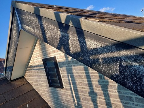 付帯部塗料:関西ペイント セラMシリコン 軒天色:KP-221 破風・雨樋色:KP-50 |