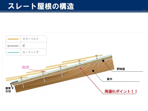 | 屋根塗装では見えない部分が重要 屋根塗装は、完成すると見た目はとてもきれいになります。 しかし、本当に大切なのは見えない施工品質です。 例えば タスペーサーの有無 下塗り材の選定 塗装回数 乾燥時間 こうした工程が、屋根の耐久性を大きく左右します。 まとめ 屋根塗装におけるタスペーサーは、 雨漏れを防ぐための重要な施工工程です。 特にスレート屋根では 排水を確保する 屋根内部の湿気を逃がす 雨漏れリスクを減らす といった大切な役割があります。 屋根塗装を検討する際は、 **「タスペーサー施工が含まれているか」**を確認することが重要です。 |