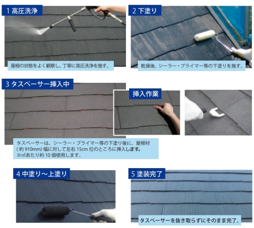 | タスペーサーが不要なケース すべての屋根塗装で必要というわけではありません。 以下の場合は不要になることがあります。 瓦屋根 屋根材の隙間が元々広い場合 屋根の劣化が激しい場合 カバー工法や葺き替え工事 ただし、スレート屋根の場合は基本的に必要と考えてよいでしょう。 |