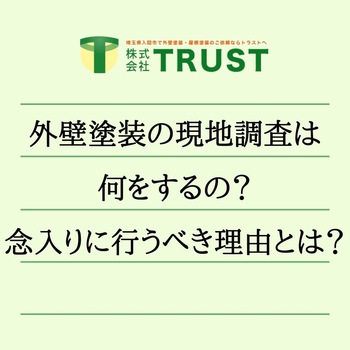 | 外壁塗装の現地調査は何をするの?念入りに行うべき理由とは? ◆現地調査では何を詳しく見ているの? 外壁塗装を行う際には、前もって現地調査を行うのが一般的です。 現地調査ではお客様の要望のヒアリング、建物の面積・長さの計測、劣化箇所の確認などを行い、正確な見積もりを算出します。 劣化具合の症状としてよくあるものとしては、色あせ、チョーキング、ひび割れ、剥がれ、苔や藻の付着などです。 また、建物の周辺状況も確認しておくことで足場が安全に組めるかどうか、工事車両が停車可能な状態かという確認のほか、隣地への足場の影響、テラスの脱着の有無なども検討します。 現地調査の際には、業者と一緒に修復が必要な箇所を見て回ることで必要な塗装について説明してもらい、工事についての不安を払しょくできるでしょう。 ◆現地調査の所要時間はどれくらい? 現地調査にかかる時間はおおよそ1時間前後です。 この時間で、業者は外壁や屋根の広さ、素材、劣化状況を確認します。 外壁の周囲にある軒天や雨樋といった付帯部分が劣化していることもあるため、それらについても同様に確認していき、一度の塗装工事で問題が解決できるよう工事計画を策定していきます。 現地調査の際には業者としっかりとしたコミュニケーションを取ることで、工事の内容をしっかり把握し、見積もり内容に納得しやすくなるためおすすめです。 もし業者が現地調査を早々に終わらせてすぐに帰ってしまった場合、建物の状態を細部まできちんと確認していない可能性があります。 こうした業者の行う外壁工事は適切な施工とならない恐れがあるため、注意が必要です。 ◆現地調査を行う際依頼主側で用意しておくと良いものはあるの? 業者が現地調査を行う時に、依頼主側で用意しておくことで作業がスムーズに進められるものがいくつかあります。 1.家の図面 家の図面があると外壁や付帯部分の正しい寸法が測りやすくなり、2階の窓の大きさなども正確に把握できます。 2.家の築年数や過去の塗装歴 築年数を前もって伝えておくことで、業者が外壁の劣化具合を判断しやすくなります。 また、塗装歴が分かっていれば前回の塗料との密着性の問題などを回避し、良質な仕上がりを実現できます。 3.周辺の状況 施工前に前面道路の交通量などの周囲の状況を伝えておけば、足場の設置の際に隣地の敷地を借りる必要があるかを把握できるなど、施工がスムーズに進行できるようになります。 ◆外壁・屋根塗装の相談はTRUSTへ 埼玉県の入間・飯能・所沢・羽村などのエリアで外壁・屋根塗装についてお悩みの方はTRUSTへご相談ください。 現地調査を入念に行ったうえで、丁寧な塗装工事を行っています。 |