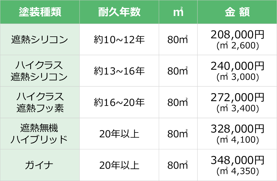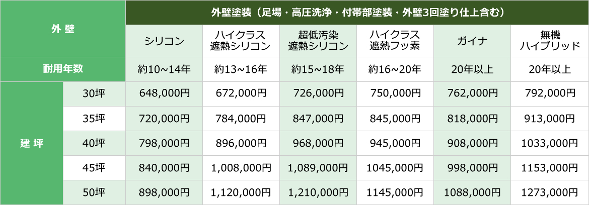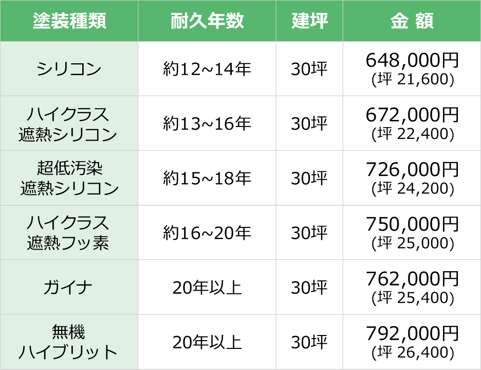 外壁塗装 代表的なプラン