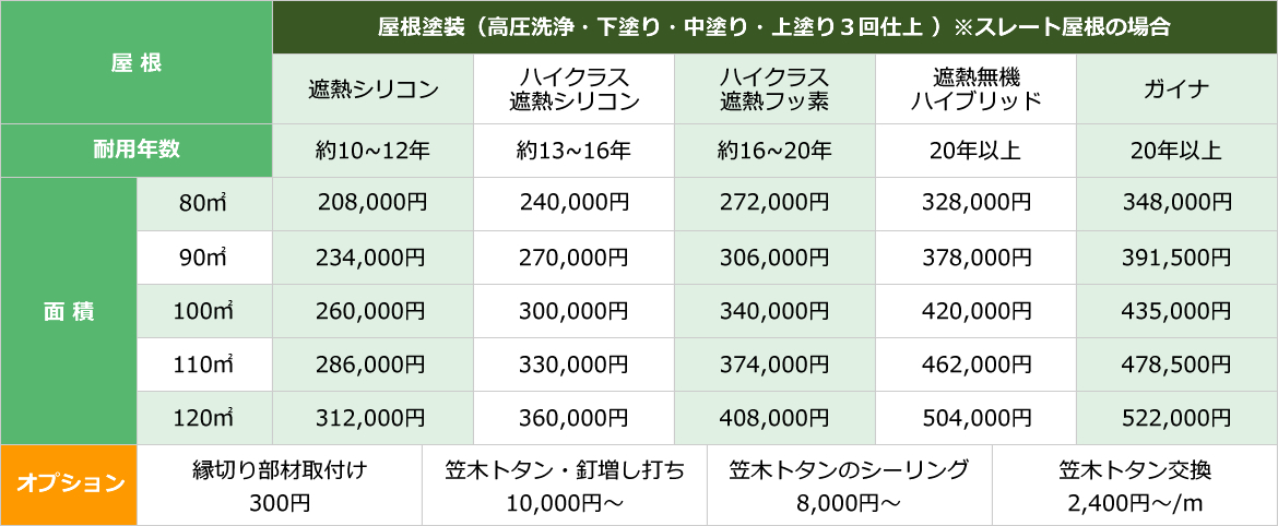屋根塗装 代表的なプラン