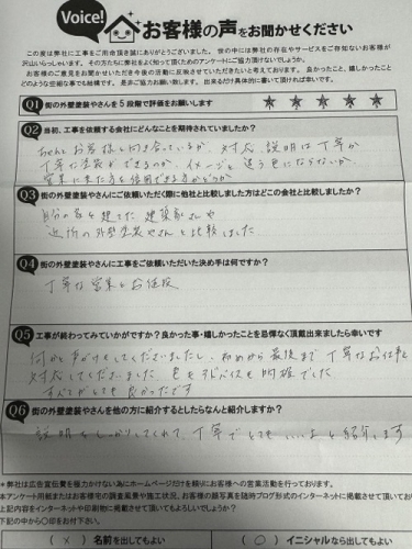 ▼ A. ちゃんとお客様と向き合っているか?対応・説明は丁寧か?丁寧に塗装が出来るのか?イメージと違う色にならないか?営業に来た方を信用出来るかどうか? |
