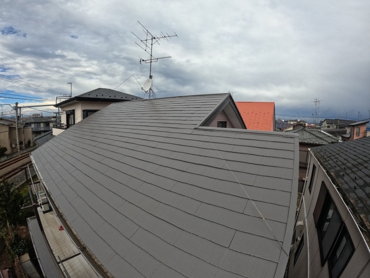 | 上塗りを塗って屋根塗装完了です。 | ||||||||||||
