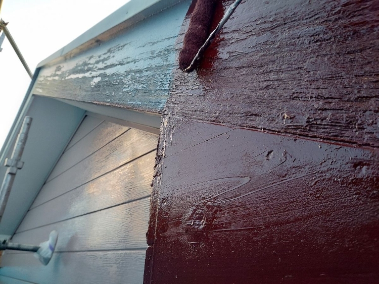 | 木部用下塗りを塗っていきます。木の劣化で塗料の吸い込みが激しいので下塗りは2回塗っていきます。 | ||||||||||||