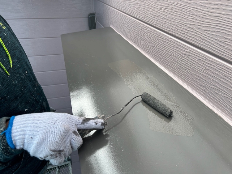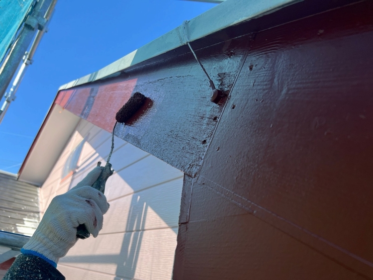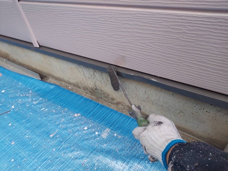 | 今回の壁質は金属サイディングなので、下塗りは溶剤の錆止めを塗っていきます。 | ||||||||||||