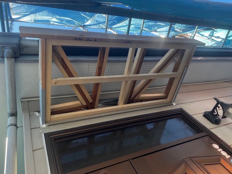 | 屋根部にベニヤ板を貼って、防水シートを貼ります。 | ||||||||||||