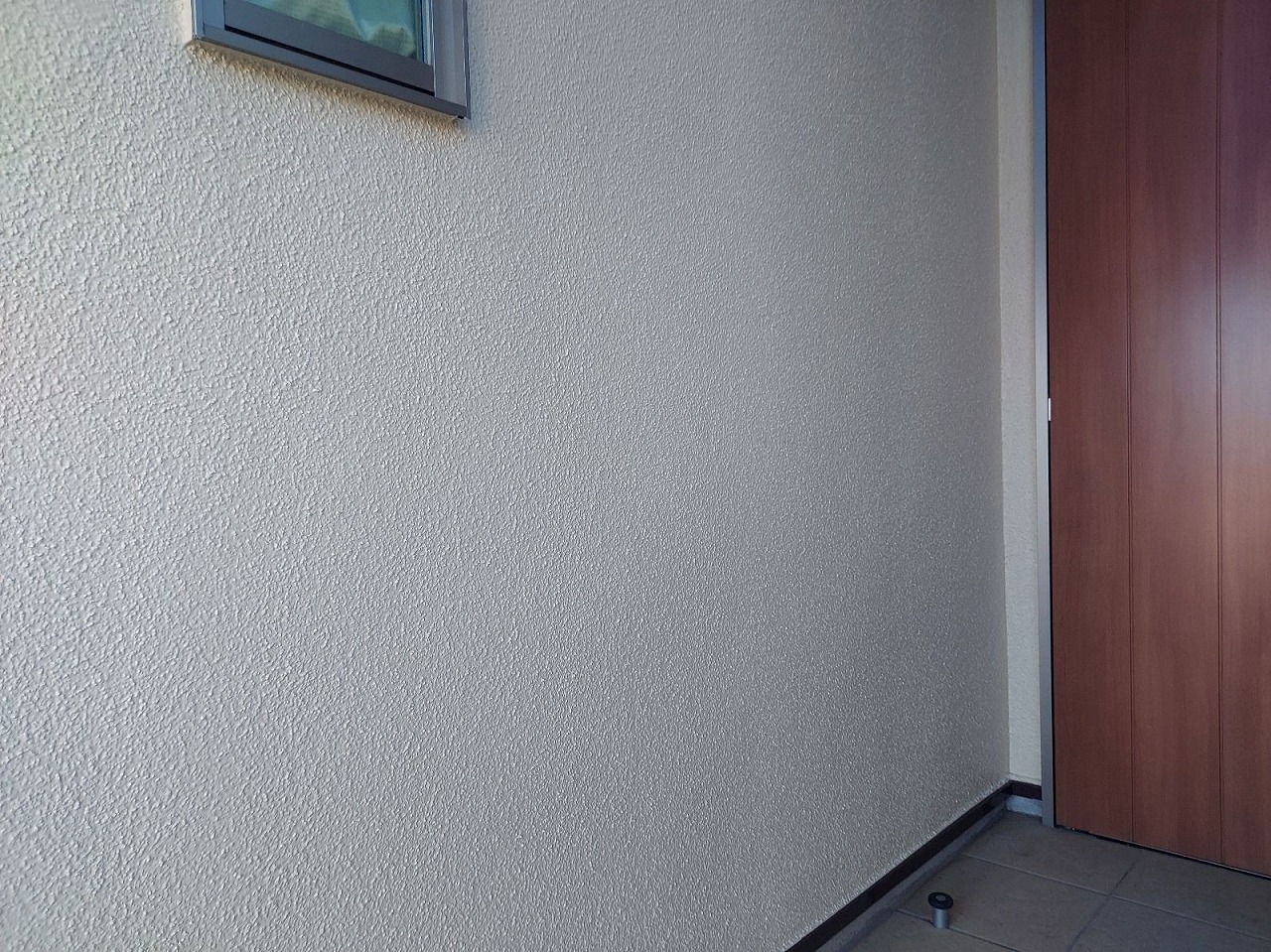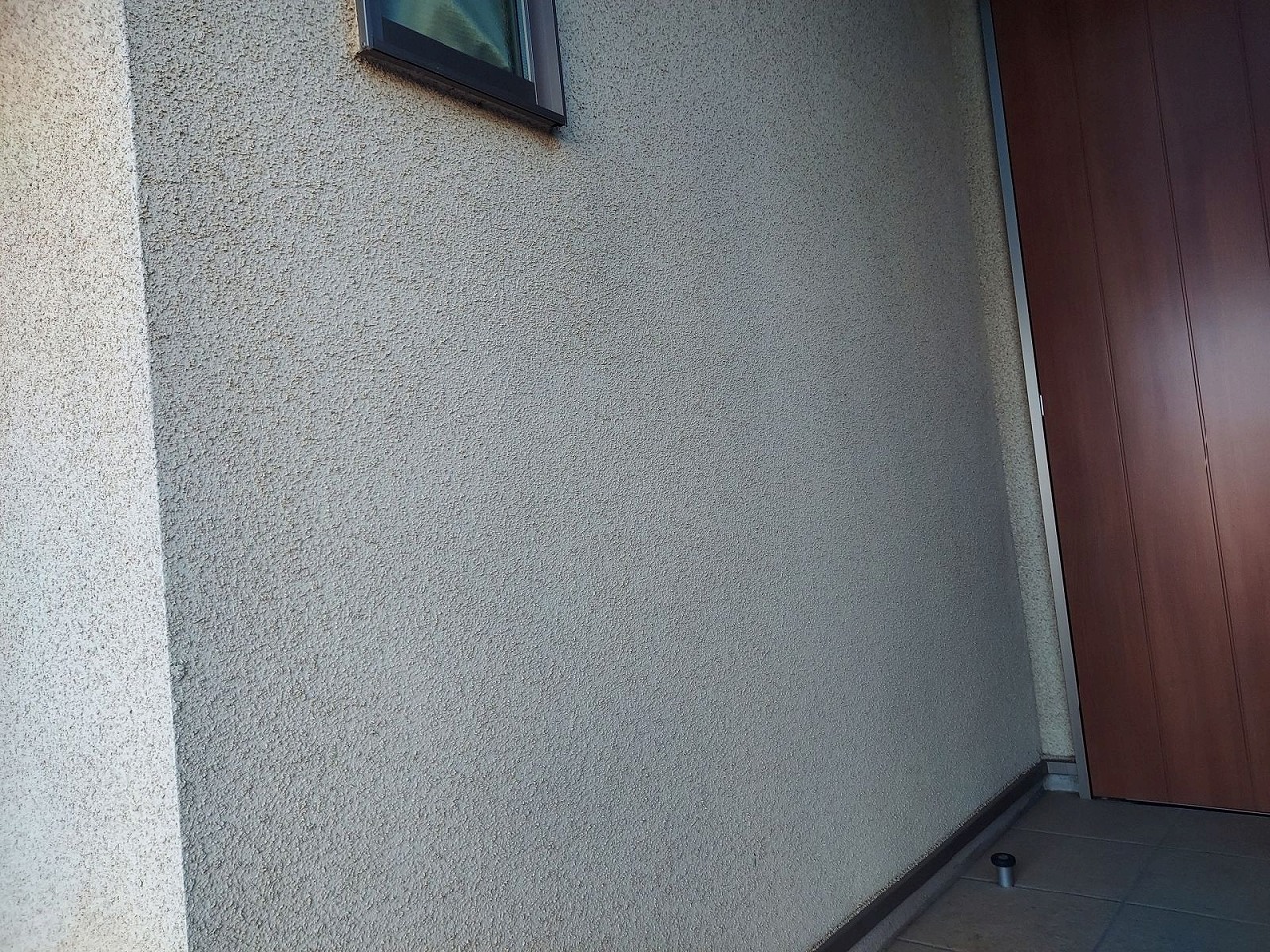 | 外壁の素材はリシンモルタル仕上げで、築年数的にも塗り替えのタイミング・細かいひび割れなどが気になりお問い合わせ頂きました。 |