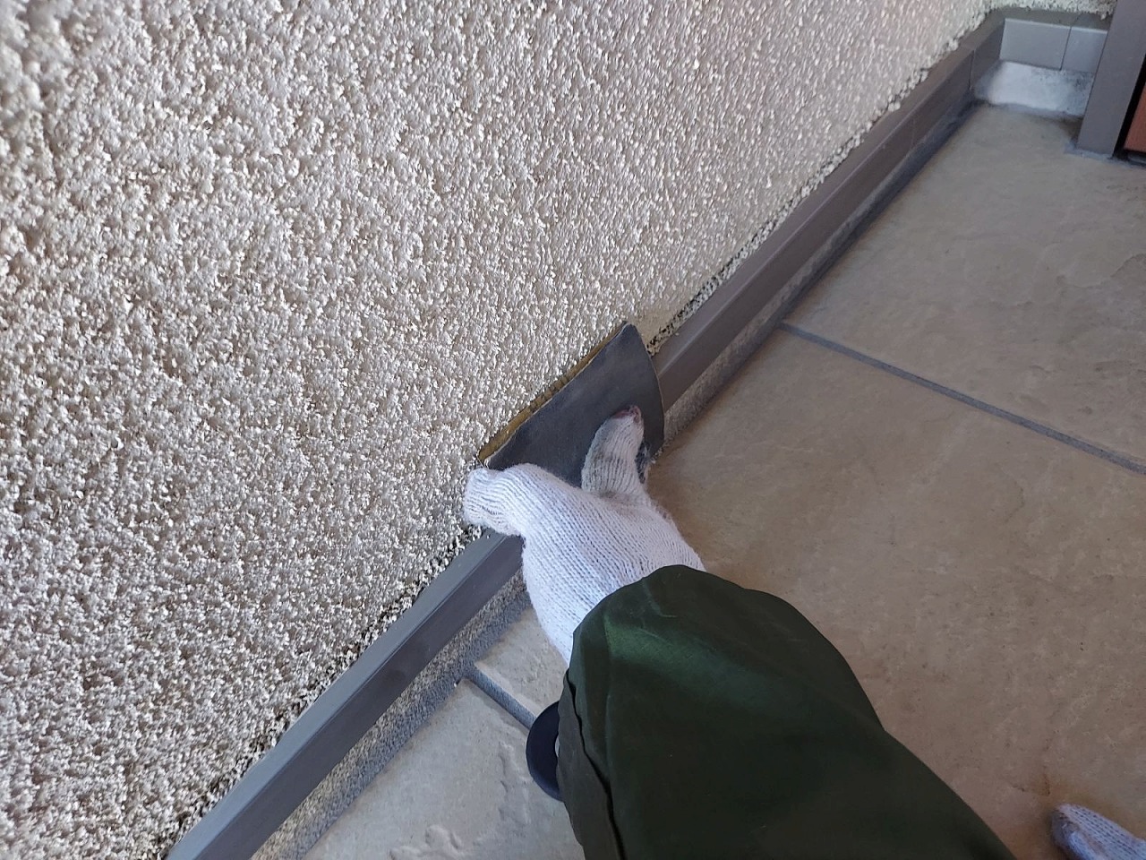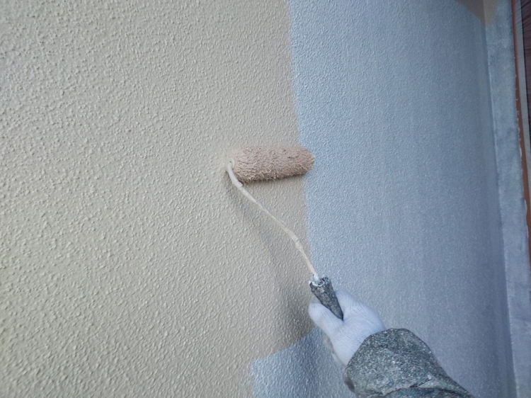 | 外壁と同じリシン下地なので、下塗りを塗っていきます。 | ||||||||||||