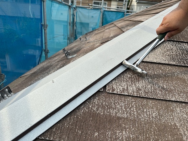 | ②棟板金の釘は築10年超えてくると抜けかけてきます。ただ塗るだけではなく、塗装前に全て打ち直しするのがメンテナンスの重要性です! | ||||||||||||