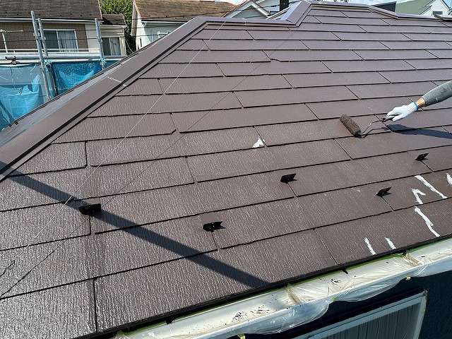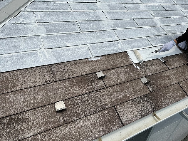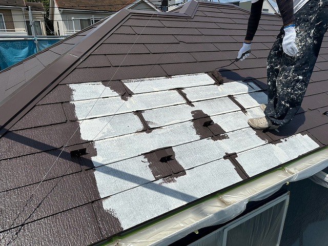 | ⑤屋根全体の下塗りを塗っていきます。 | ||||||||||||