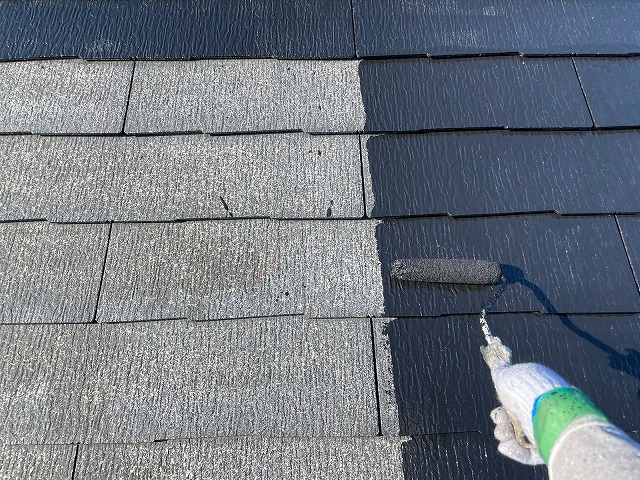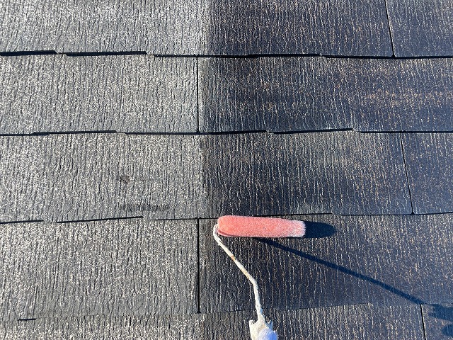 | 屋根全体に下塗りのシーラーを塗っていきます。 | ||||||||||||