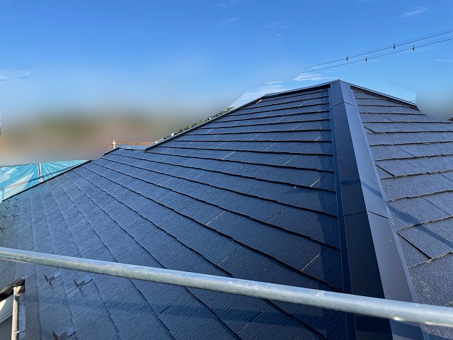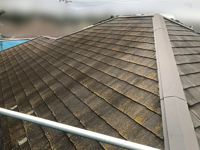 | 外壁は耐久性の良いフッ素加工されているサイディング材が貼ってあるお宅で外壁は奇麗な状態を保てていますが、屋根は屋根は通常のスレート屋根なのでメンテナンスしておかないと雨漏れするのではないか?とお問い合わせ頂きました。 屋根基材自体が劣化で割れてしまうと、下に敷いてある防水シートも傷めてしまい雨漏れを引き起こす可能性があるので屋根塗装をご提案しました! |