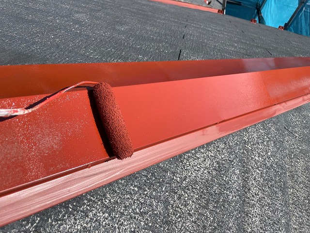 | 鈑金部は下塗りに錆止めを塗っていきます。屋根材と鈑金部は下塗りを分けます! | ||||||||||||