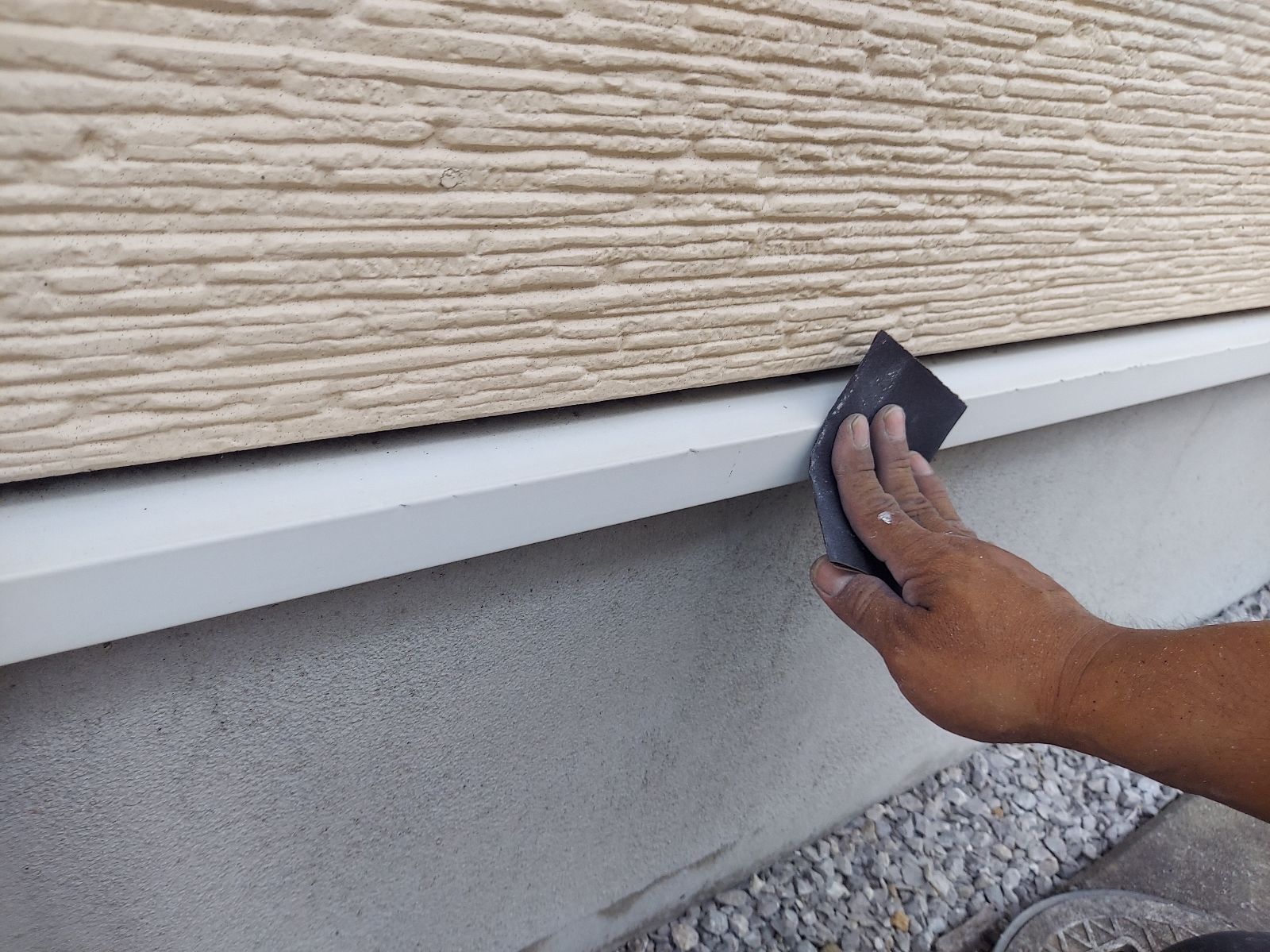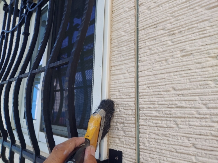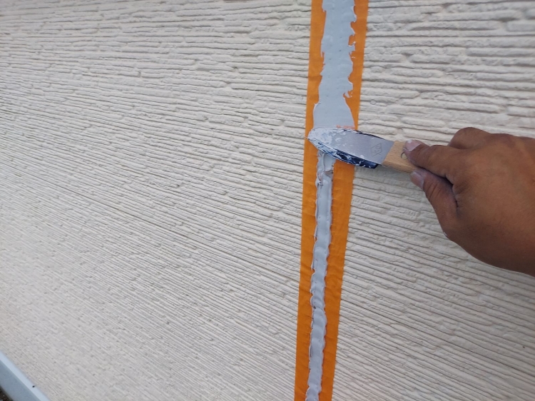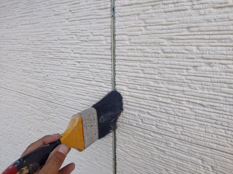 | ④サイディングとコーキングの密着性を高める為にプライマーを塗っていきます。 | ||||||||||||