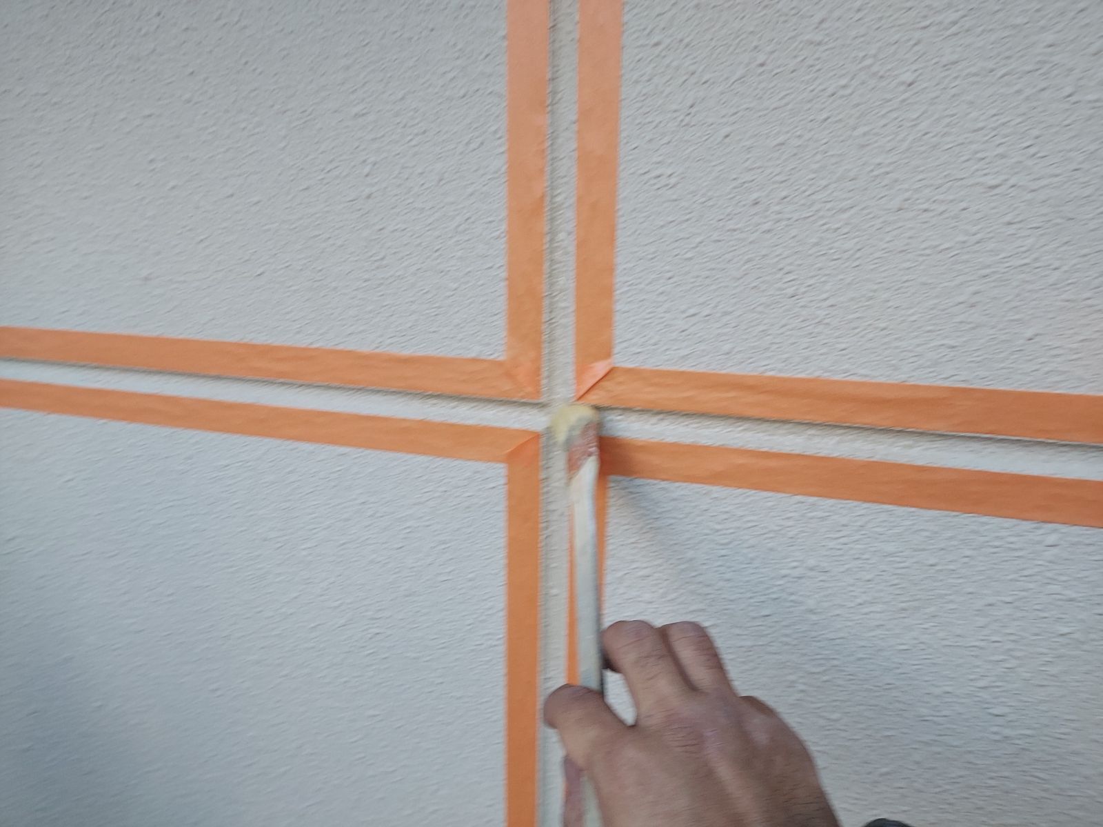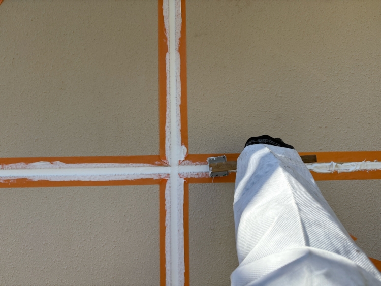 | ③コーキングの充填後に、ヘラを使って表面を整えていきます。 | ||||||||||||