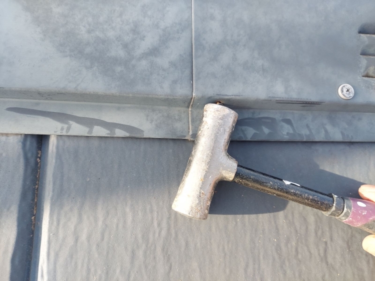 | ②年数が経つと板金を止めている釘は必ず緩んでくるので、締め直さずに塗装してしまうと台風などの風害で外れて飛んでいく恐れがあるので全ての釘をチェックします。 | ||||||||||||