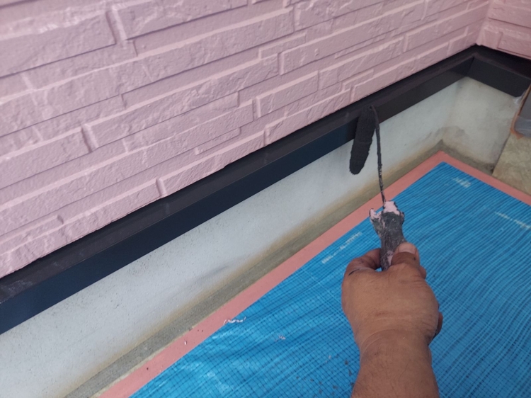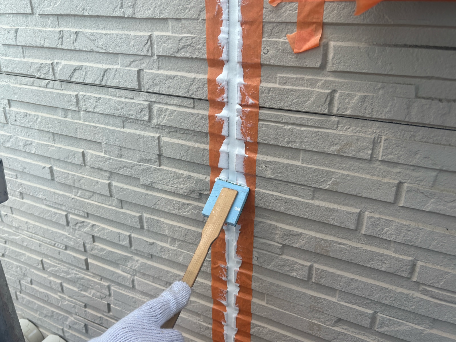 ③サイディングとコーキングの密着を高める為にプライマーを塗っていきます。 |