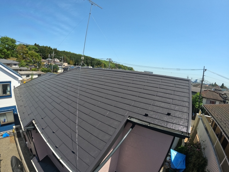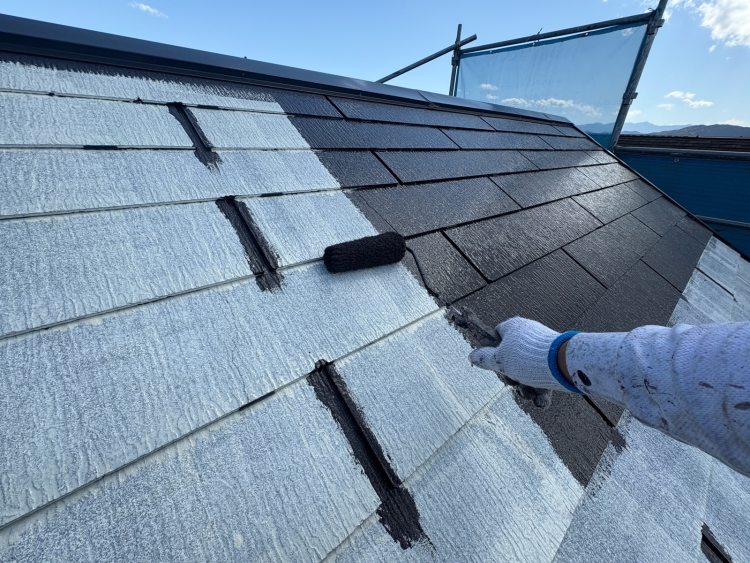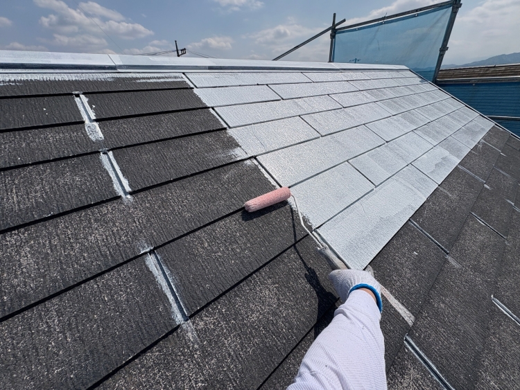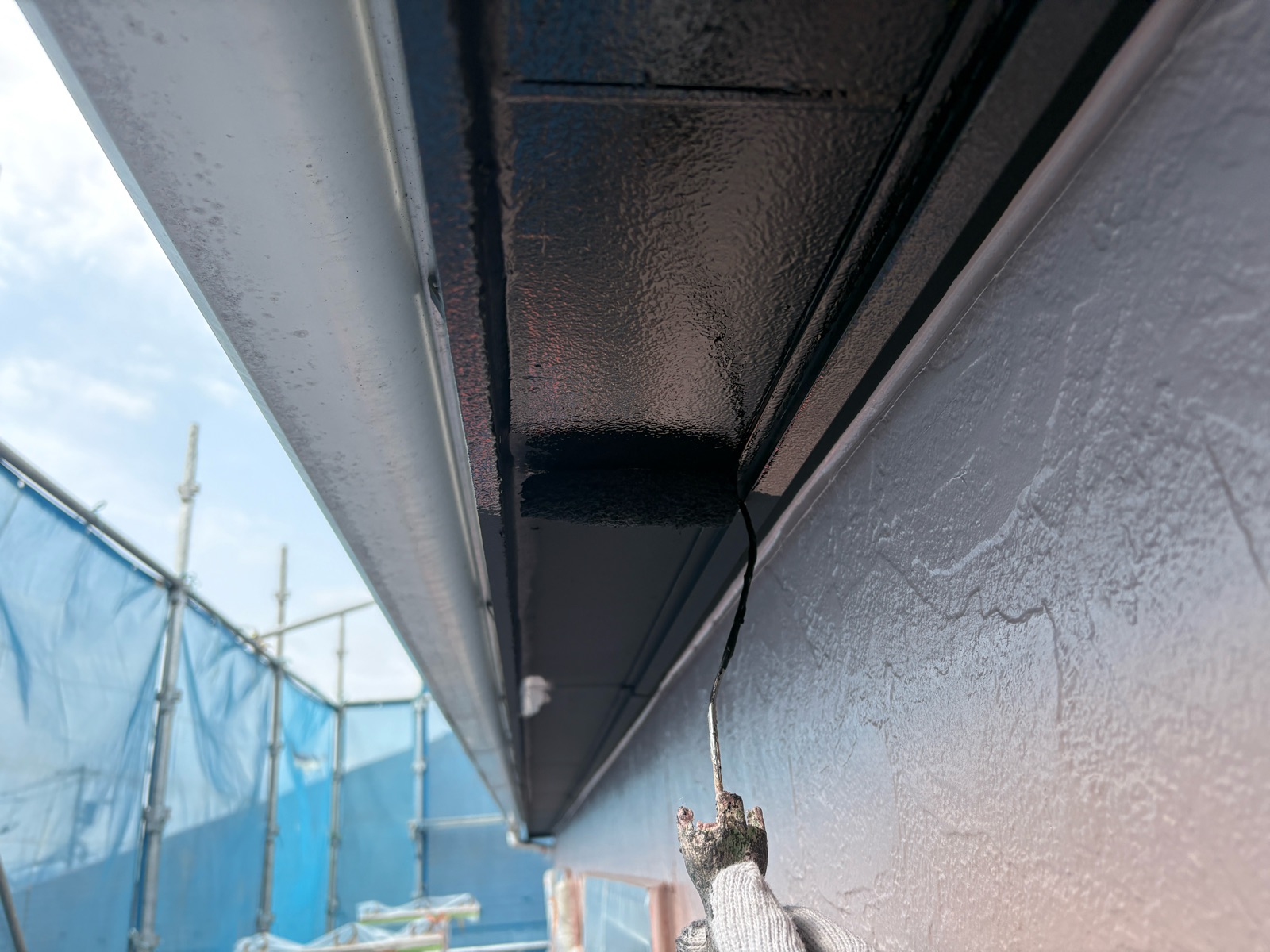④上塗りを塗って完成です。 外壁塗装工程は下塗り・中塗り・上塗りの3工程です! |