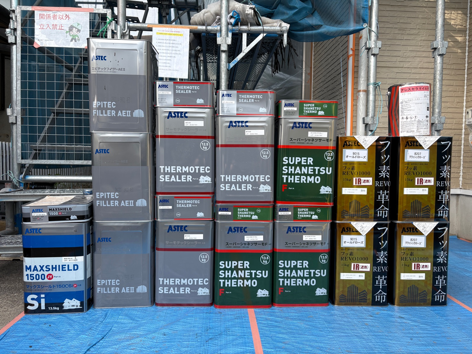 | トラストでは数年前などの在庫は使用せず、現場毎にしっかり新品の塗料を使用しております! | ||||||||||||