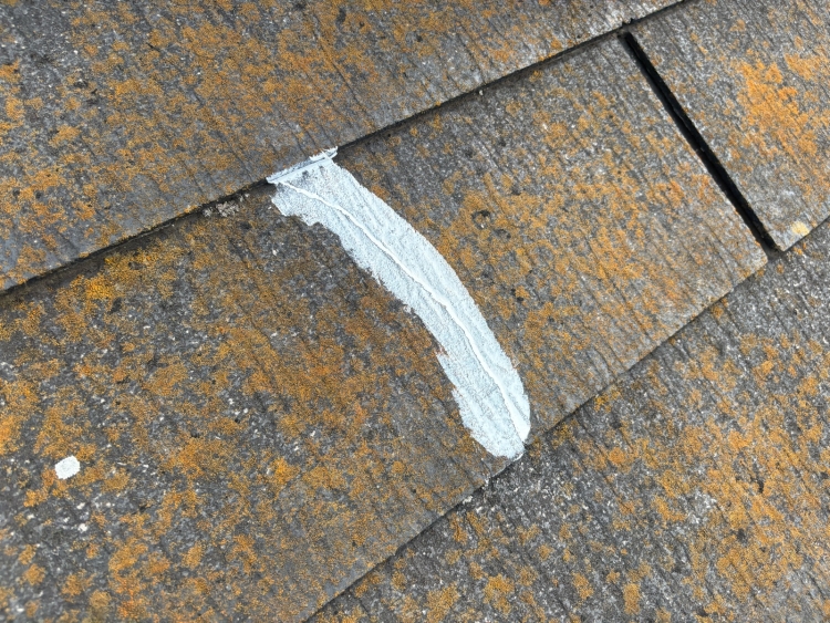 | ⑤細かいひび割れの場所は、コーキングで補修します。ひび割れが大きい場合は、屋根材自体を差し替えなどの補修が必要になります。 | ||||||||||||