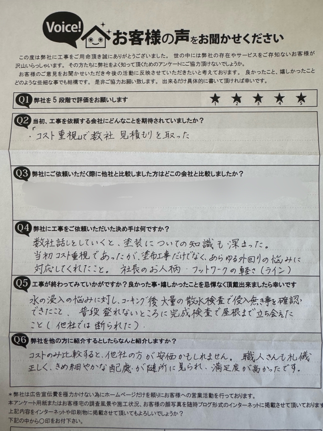 | 入間市寺竹にて外壁・屋根塗装・ベランダ交換工事を施工させて頂いたk様よりアンケートを頂きました! [] |