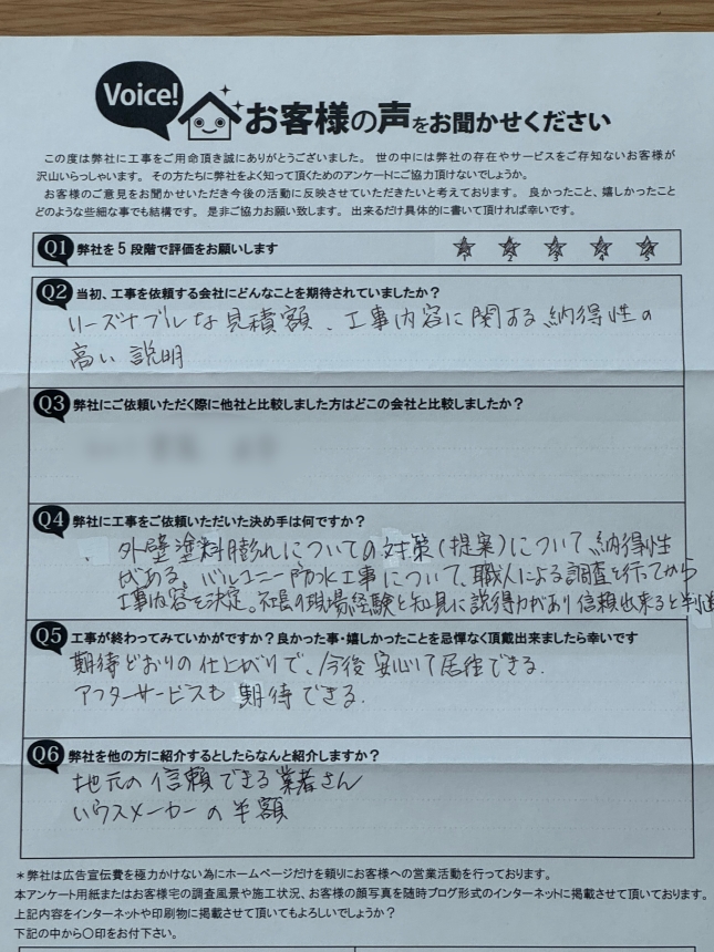 | 入間市下藤沢にて外壁塗装工事を施工させていただいたH様より工事後アンケートをいただきました! [] |