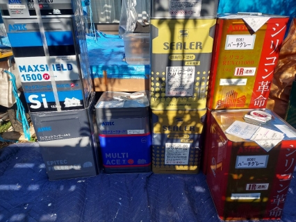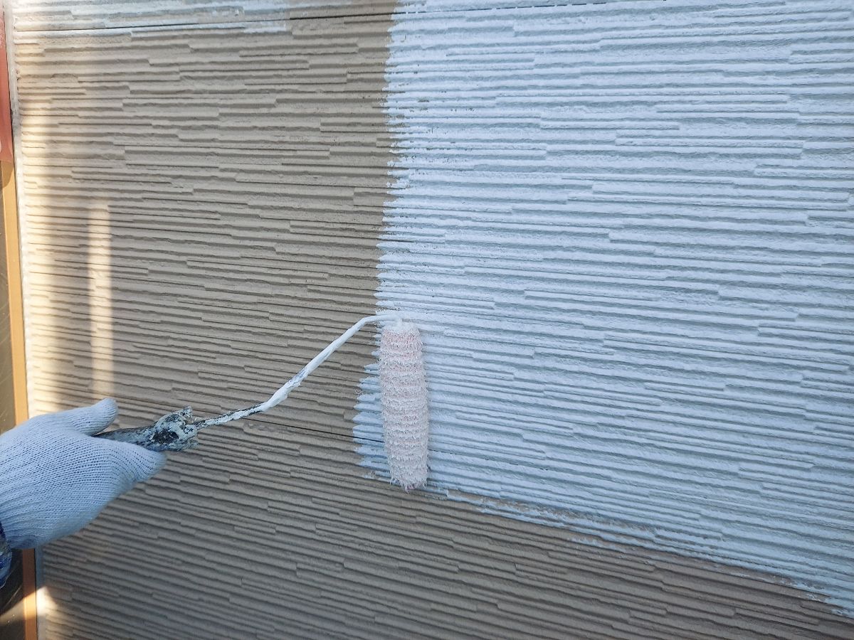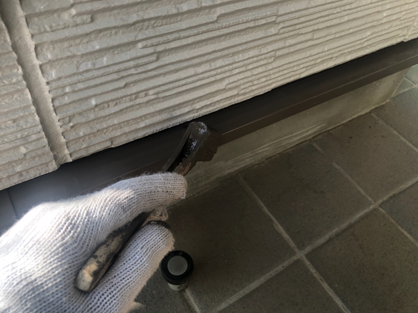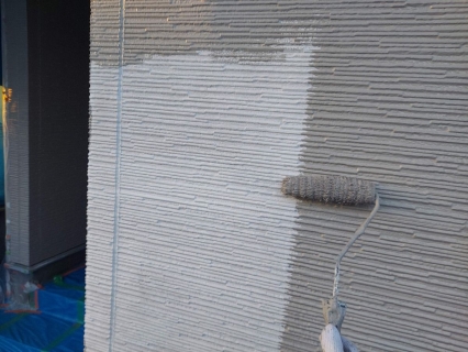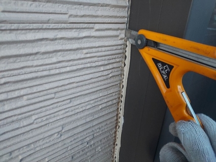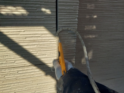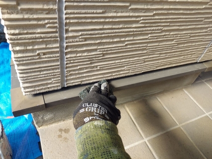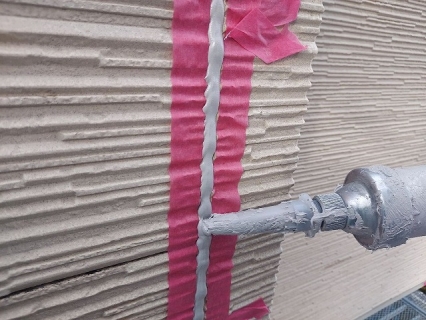 | コーキングの密着性を高めるプライマーを塗っていきます。 |
