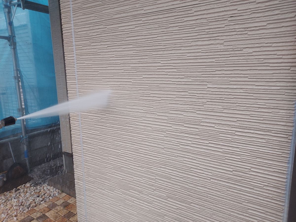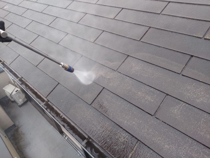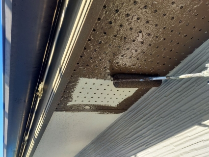 高圧洗浄をしていきます。 最後に雨樋の中も洗っていきます! |