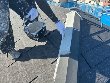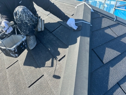 | 屋根の棟鈑金の重なりも開いていたのでコーキングを打ちました! |