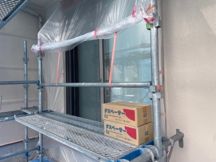 養生は窓を塞いでしまうので暗くなったり・換気が出来なくなります。 少しでも日常生活と変わらない様に、工夫できるところは一手間加えて養生をします! |