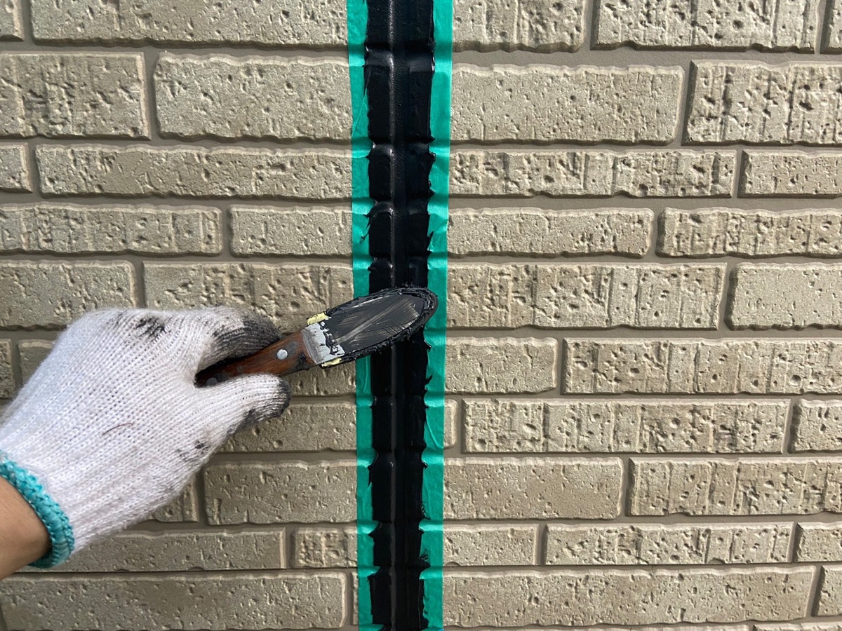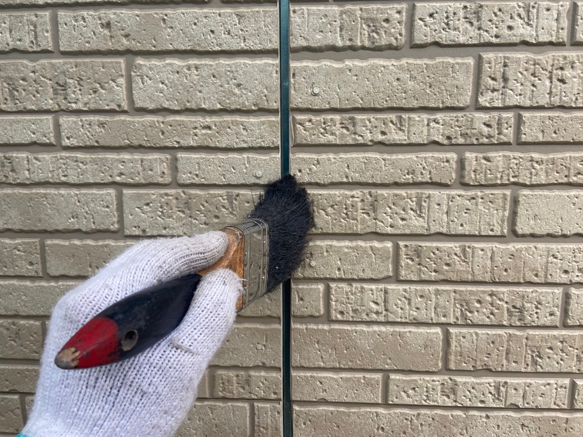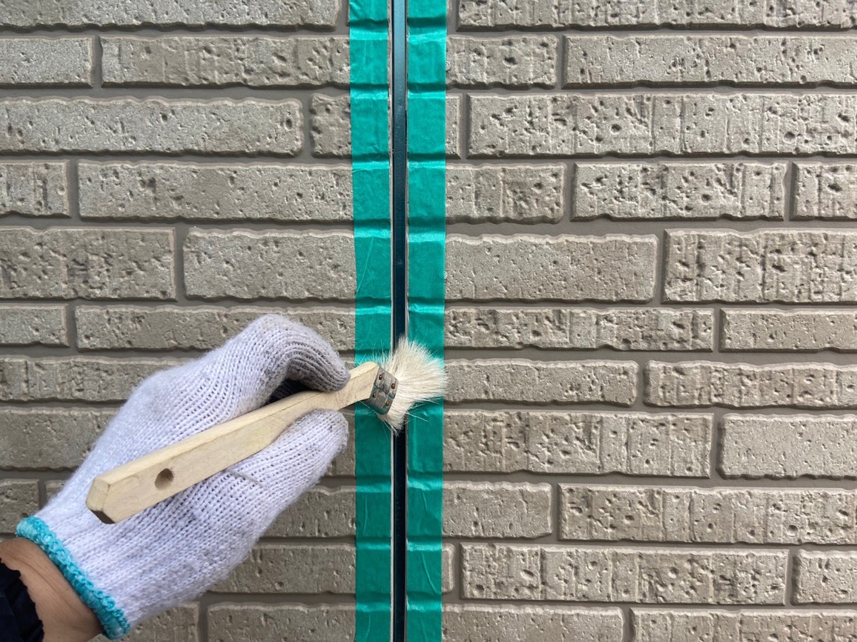 | サイディングとコーキングの密着を良くする為に、プライマーを塗っていきます。 |