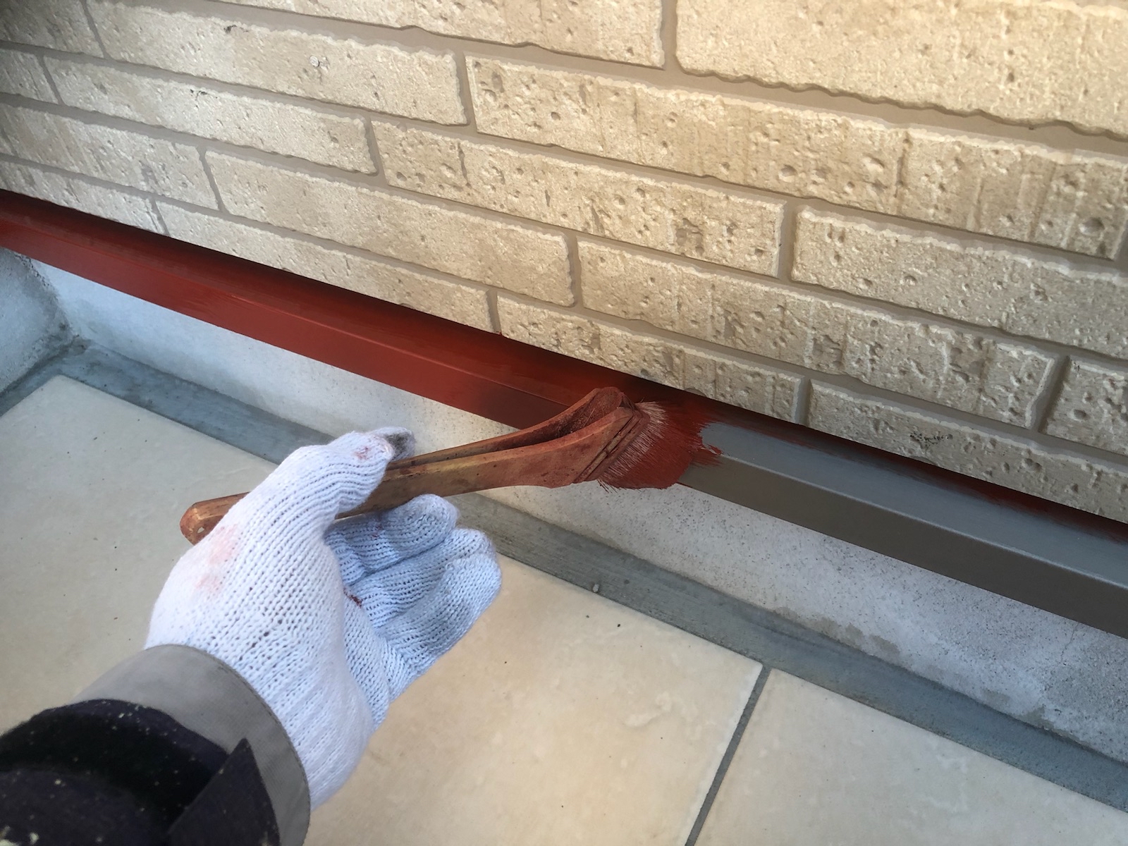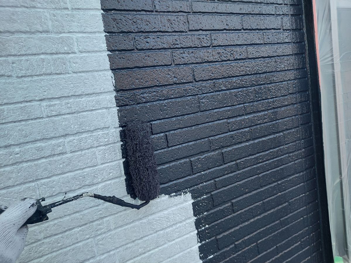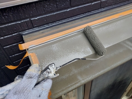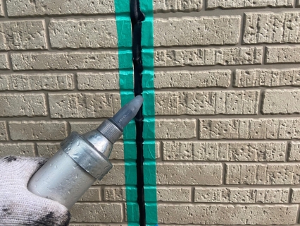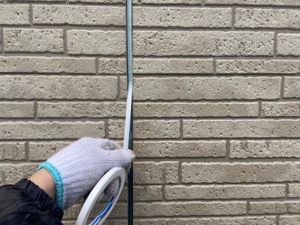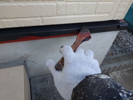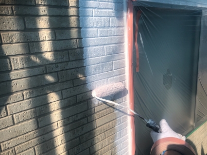 | サイディングとコーキングの密着を良くする為に、プライマーを塗っていきます。 |