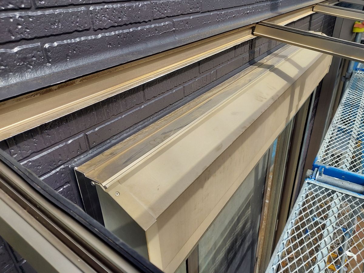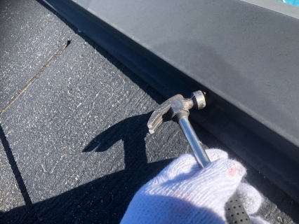 | 棟鈑金の釘が緩んでいるので、塗装前に締め直しました。 |
