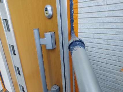 | ①ケレンをしていきます。ケレンとはペーパー等で擦り表面の下地調整や細かい傷を付ける事で塗料との密着を良くする大事な下地作る作業です。 |