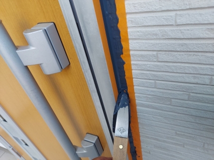 | ⑥目地・窓廻りの既存コーキングは全て取り除き打ち替えを行いました! |