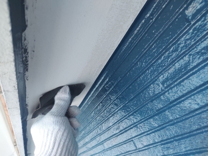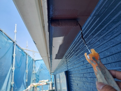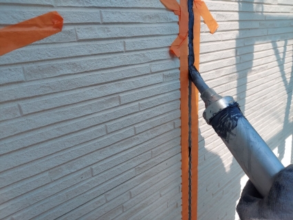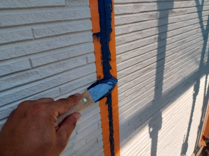 | ④サイディングとコーキングの密着を良くする為にプライマーを塗っていきます。 |