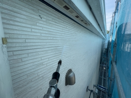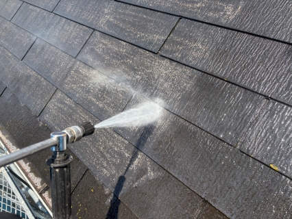 | ①高圧洗浄で長年の汚れを綺麗に落としていきます。汚れが残っていると塗料の密着に影響が出るので凄く大事な作業です! |