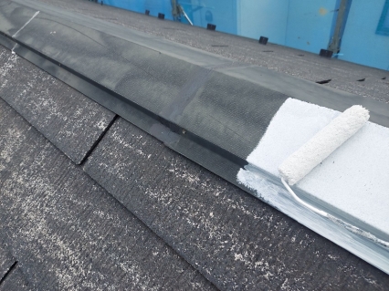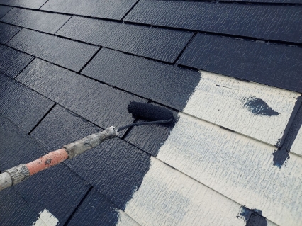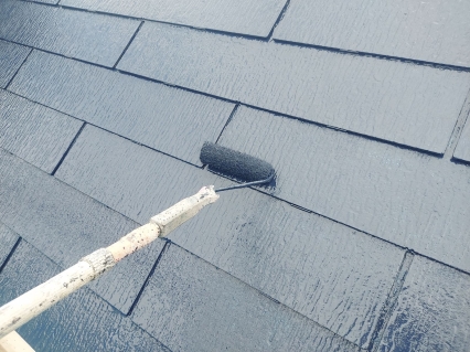 ⑦上塗りを塗って完成です! 屋根塗装工程は下塗り・中塗り・上塗りの3工程です!※下地の状態が悪い場合は下塗りを2回塗る場合があります。