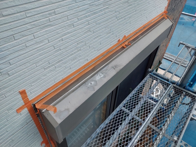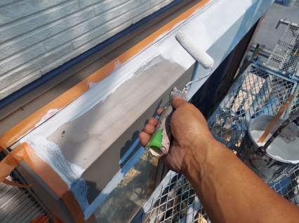 | ②シャッターボックスの素材はトタン部なので下塗りに錆止めを塗ります。 |