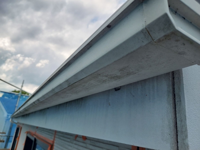 | ①雨樋もケレン作業で密着の良い下地作っていきます。 |