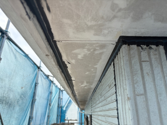 | ①軒天もケレン作業で密着の良い下地作っていきます。 |