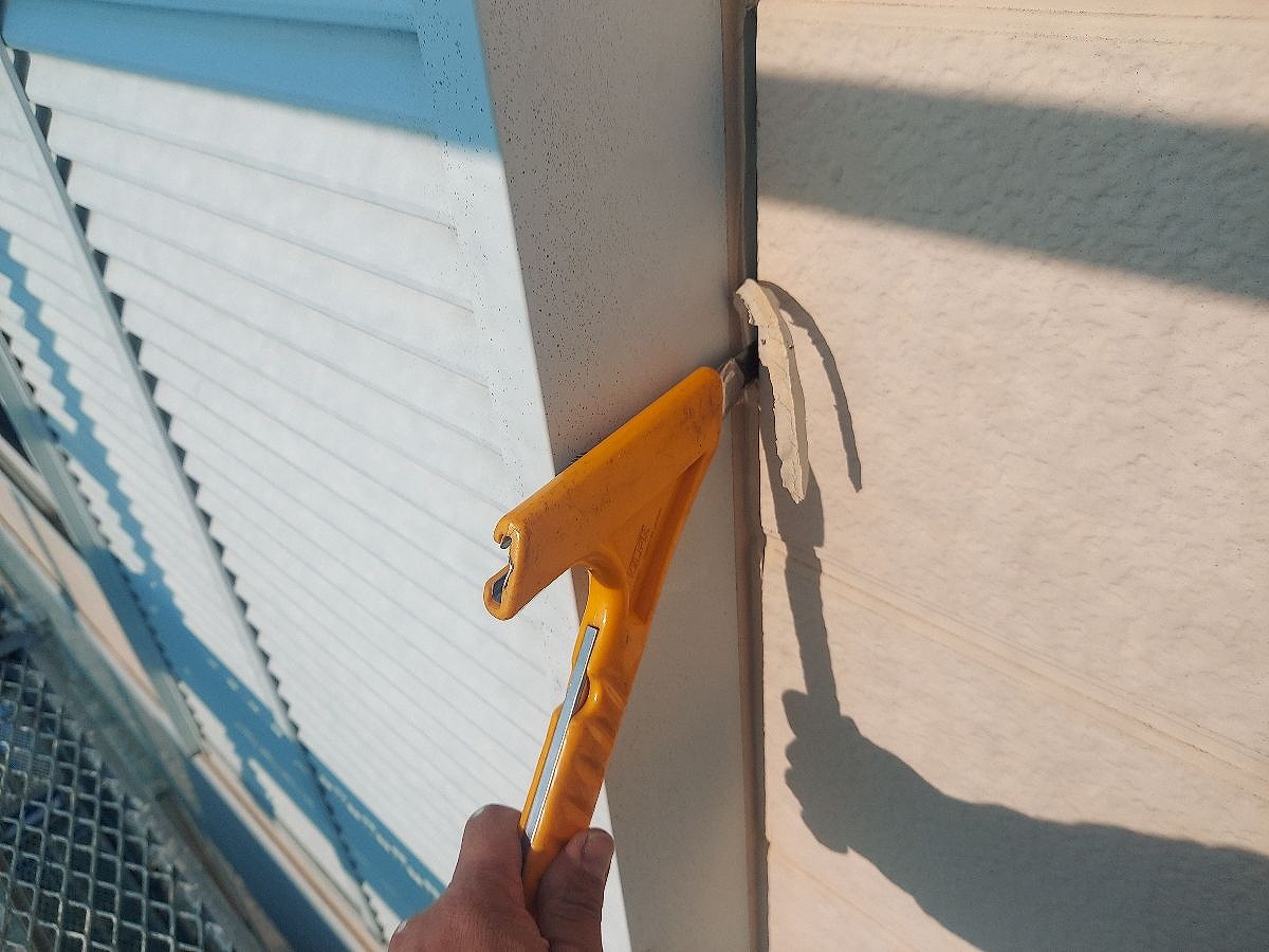 ①既存のシーリングを全て撤去します! 窓廻り中の防水シートを切らない様に工夫をしながら撤去します! |