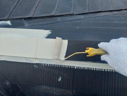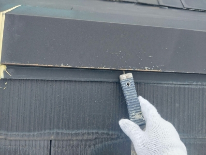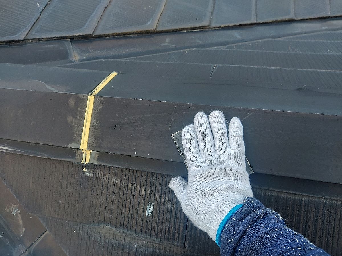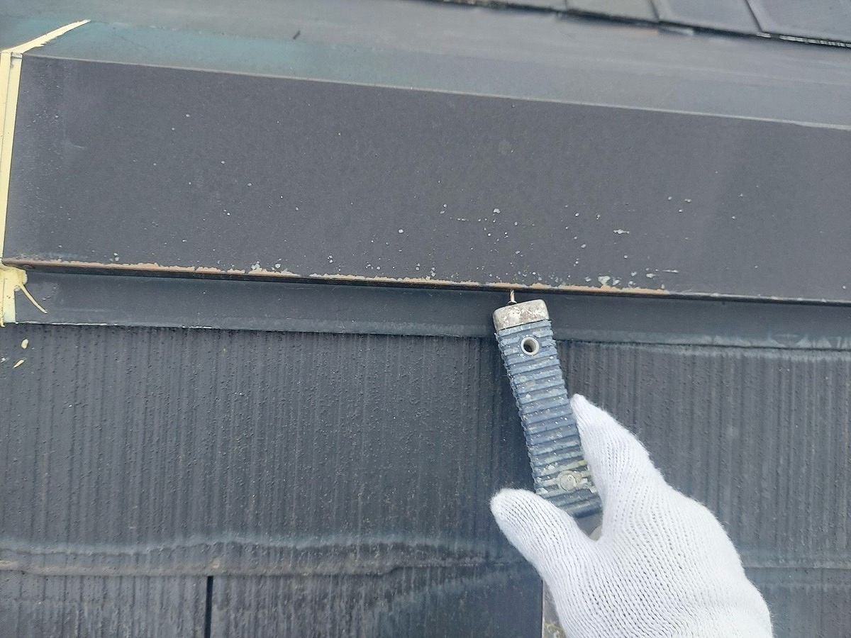 ②棟鈑金の釘は年数が経つと緩んできたり、抜けかけてきます。 塗装前にチェックをして打ち直しなどを行います! |
