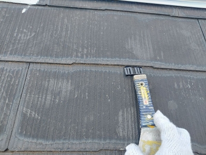 タスペーサーは、屋根材の重なり部分が塗料で埋まると雨水が入ったときに抜けないので、雨漏れの原因になってしまうのを防ぐ役割をします!