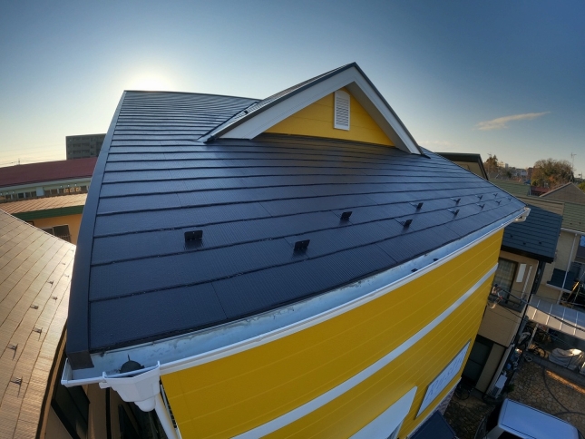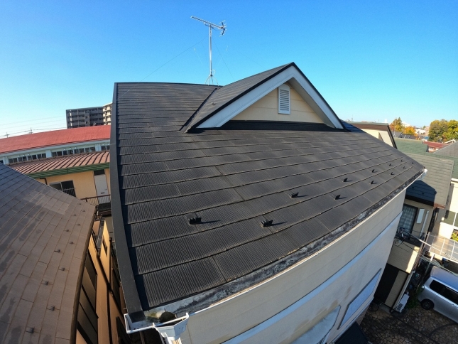 屋根塗料メーカー:アステックペイント 使用塗料:スーパーシャネツサーモF 色:キャビアブラウン |